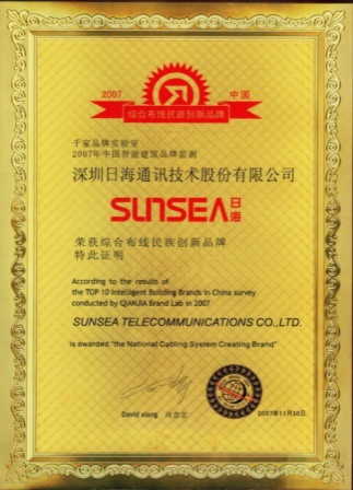2007年11月29日~30日,710公海公司智能综合布线受邀前往上海光大会展中心酒店,参加由千家网筹办的“2007年第八届中国国际建筑智能化峰会暨颁奖典礼”,获得了“布线民族创新品牌”特别奖项。
